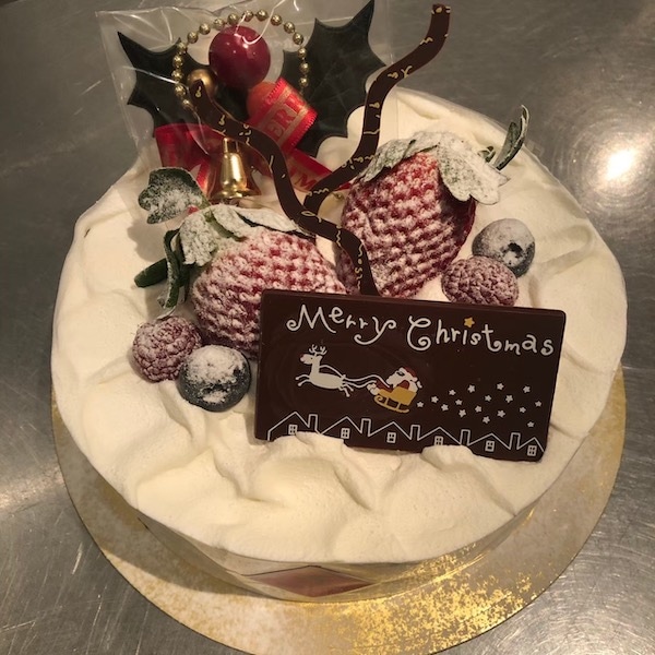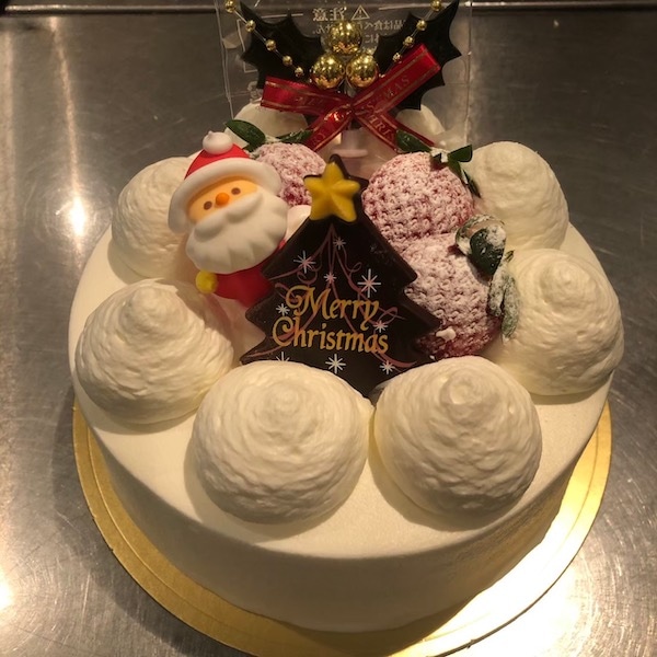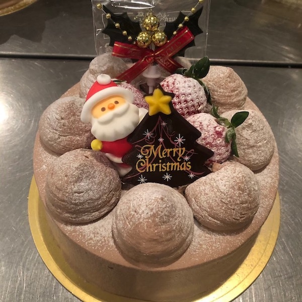 丸太を模したロールケーキの上にクリームやチョコレートをあしらった、クリスマスの定番ケーキです。